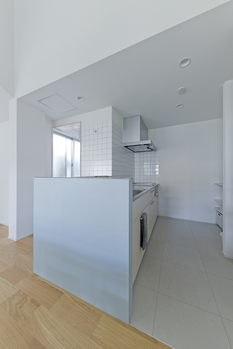キッチンは向きを大きく変更し、調理中でもリビング全体を見渡せる配置に再構成。