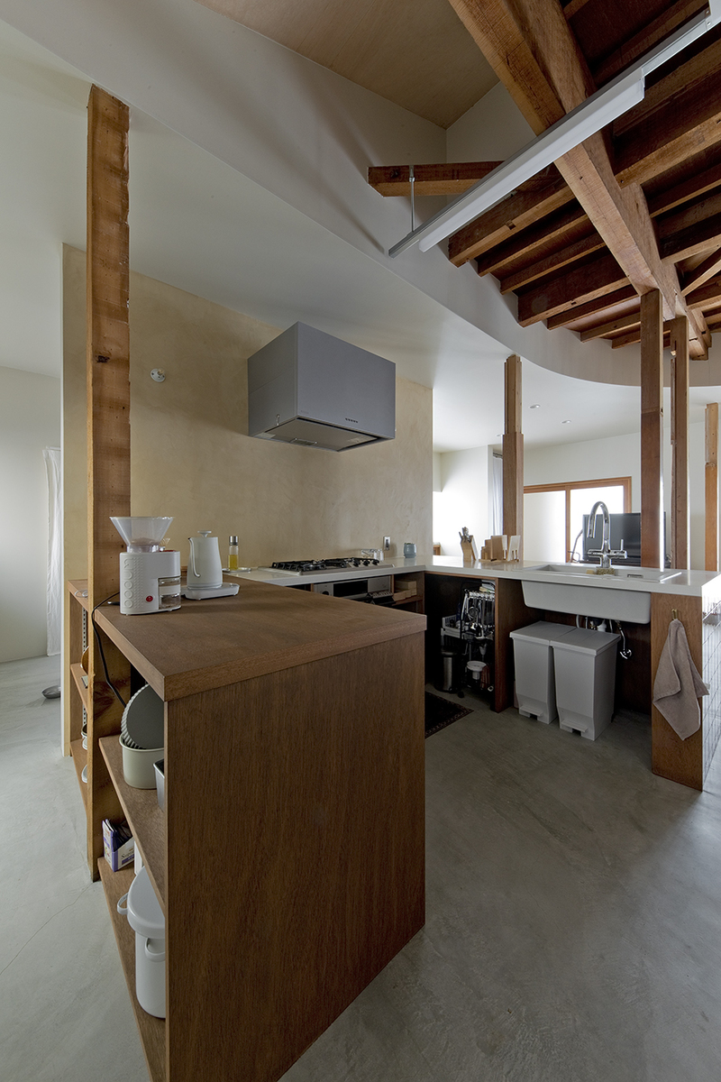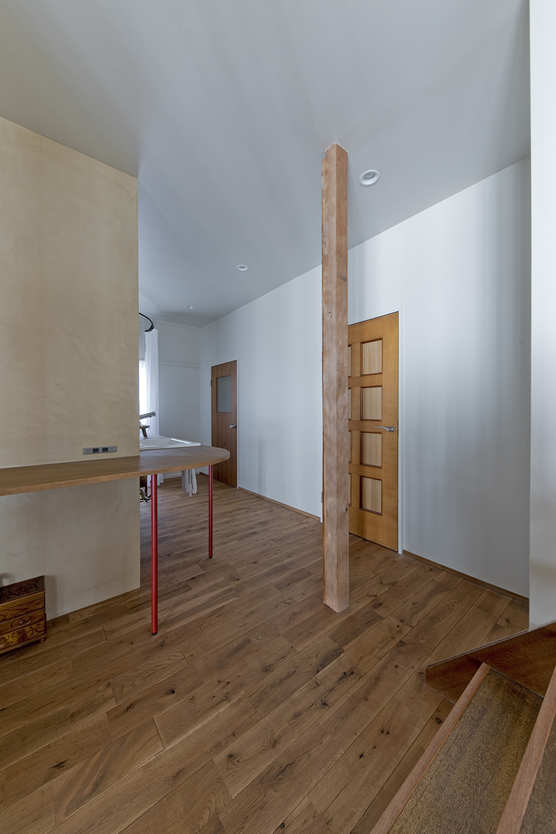 玄関から続く土間空間を活かした、個性的でユニークなデザインが印象的です。
