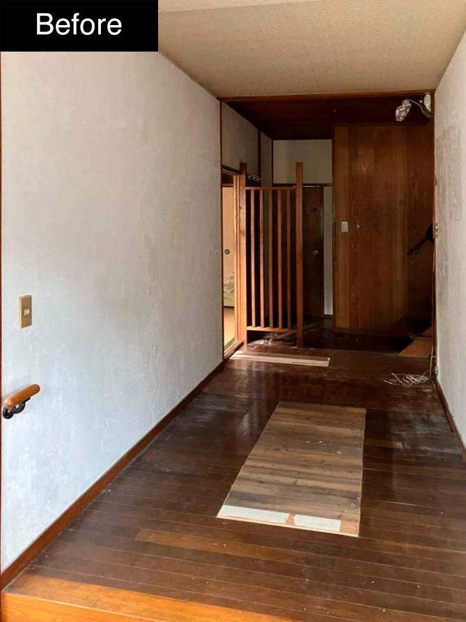 野菜づくりや家庭菜園を楽しめる暮らしを思い描きながら、「予算を抑えつつ、好きな内装のお家にしたい」という想いで、広いエリアで探されました。出逢われたのは、築48年の中古戸建て。