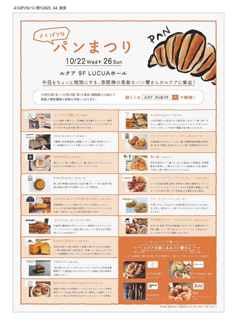 京阪神の素敵なパン屋さんがルクア大阪に集合する「よくばりなパンまつり」にSCHOOL BUS COFFEE BAKERSが出店いたします。